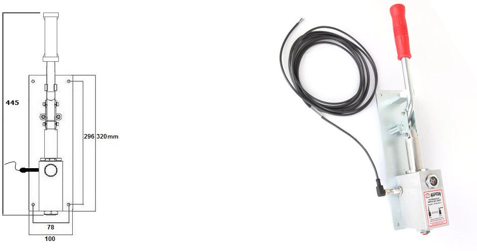 Operating principle: When the lever of Kurtek Hydraulic Control Unit is pulled downwards, the oil volume below the piston is pushed through the connecting tubing to activating cylinder of the quick closing valve