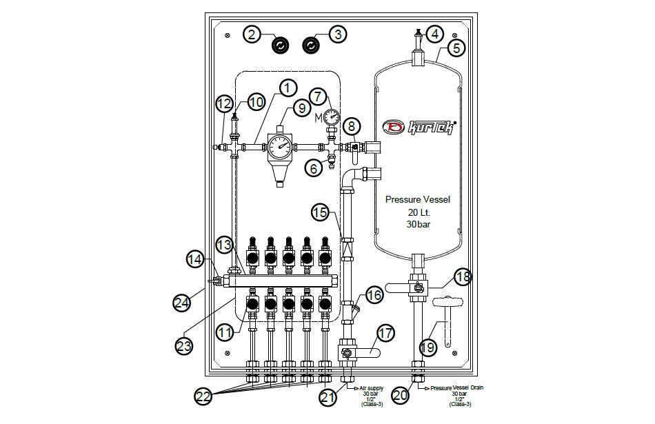 | 17 | 1/2" PN63 Ball Valve (Air Supply) | AISI 304 | DIN 3202/4-M3 |